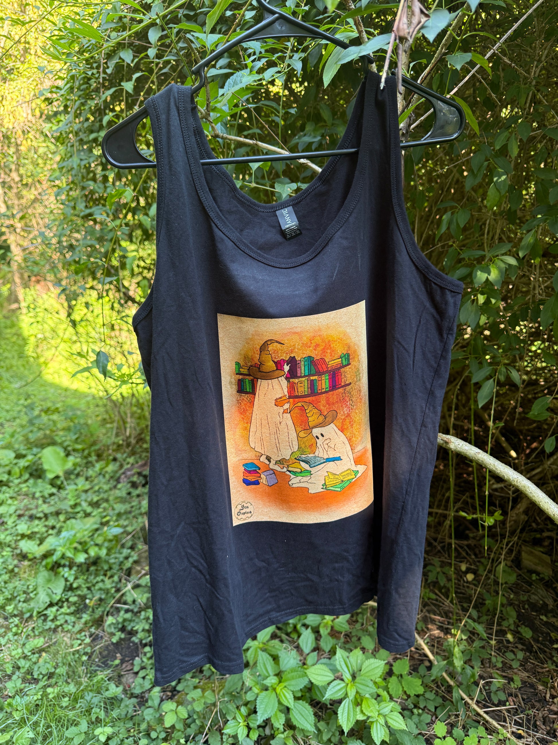 "Fantasmas Y Libros" XL W Black Tank Top